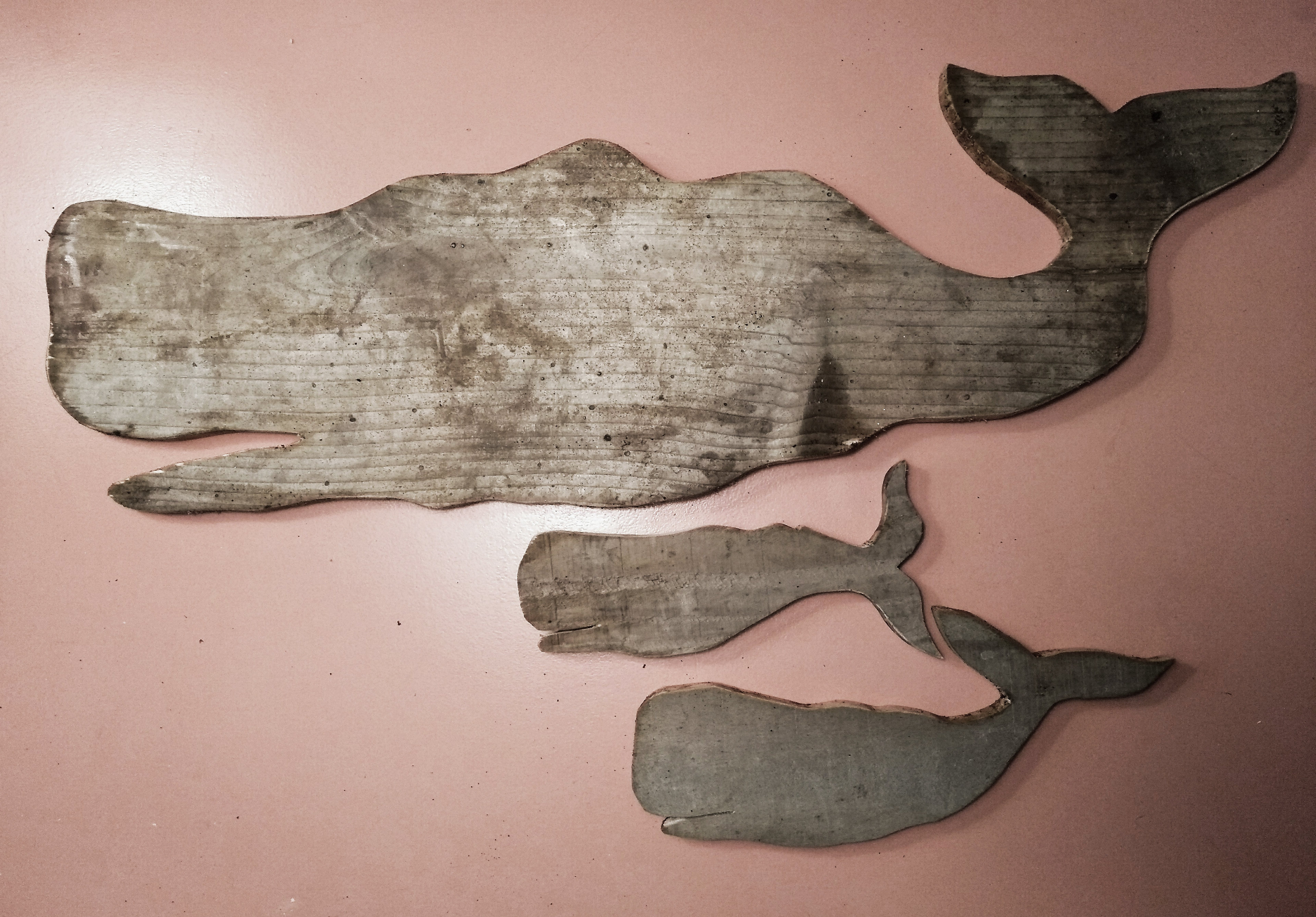 These wales are made from old planks found on beaches.